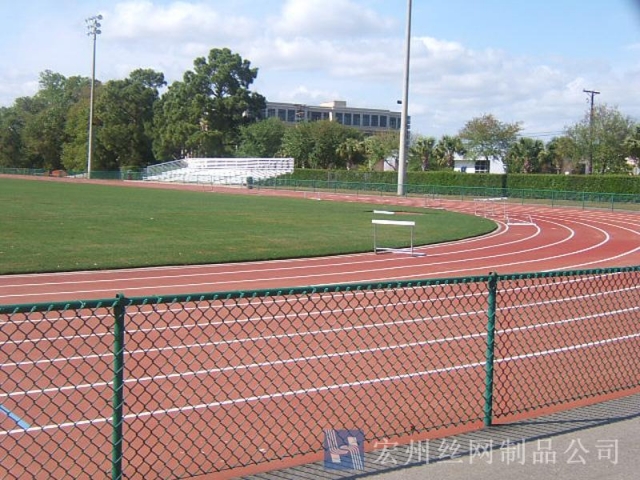 【田徑場圍網(wǎng)】是選用優(yōu)質(zhì)低碳鋼絲編織焊接而成。采用防盜螺栓卡接、扁鐵固定、組裝掛鉤方式連接。經(jīng)過電鍍、熱鍍、噴塑、浸塑處理,具有防腐、防老化、抗曬、耐候、色彩鮮亮、網(wǎng)面平整,強(qiáng)力張緊,不易受外力撞擊變形、現(xiàn)場施工安裝、靈活性強(qiáng)(可根據(jù)現(xiàn)場要求隨時調(diào)整造型和尺寸)等優(yōu)勢。