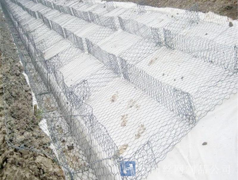 雷諾護墊是厚度在0.15-0.5m(含0.5m)的網(wǎng)箱結(jié)構(gòu)。主要用作河道、岸坡、路基邊坡護坡結(jié)構(gòu)。既可防止河岸遭水流、風(fēng)浪侵襲而破壞,又實現(xiàn)了水體與坡下土體間的自然對流交換功能,達到生態(tài)平衡。坡上植綠可增添景觀、綠化效果。