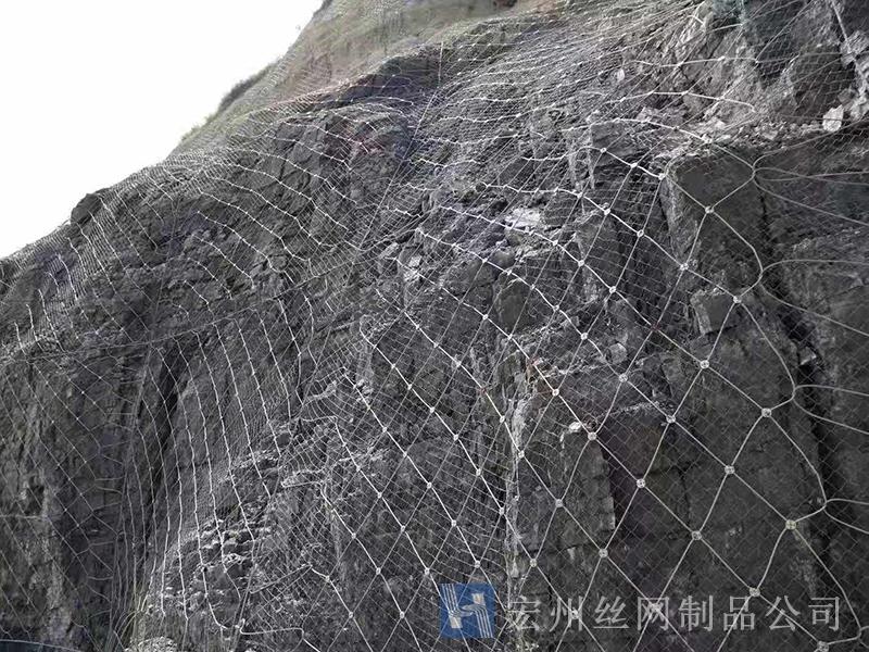材質(zhì):鋼絲繩網(wǎng)、支撐繩和減壓環(huán)構(gòu)造:由鋼絲繩網(wǎng)或環(huán)形網(wǎng)(需攔截小塊落石時附加一層鐵絲格柵)、固定系統(tǒng)(錨桿、攔錨繩、基座和支撐繩)、減壓環(huán)和鋼柱四個主要部分構(gòu)成。